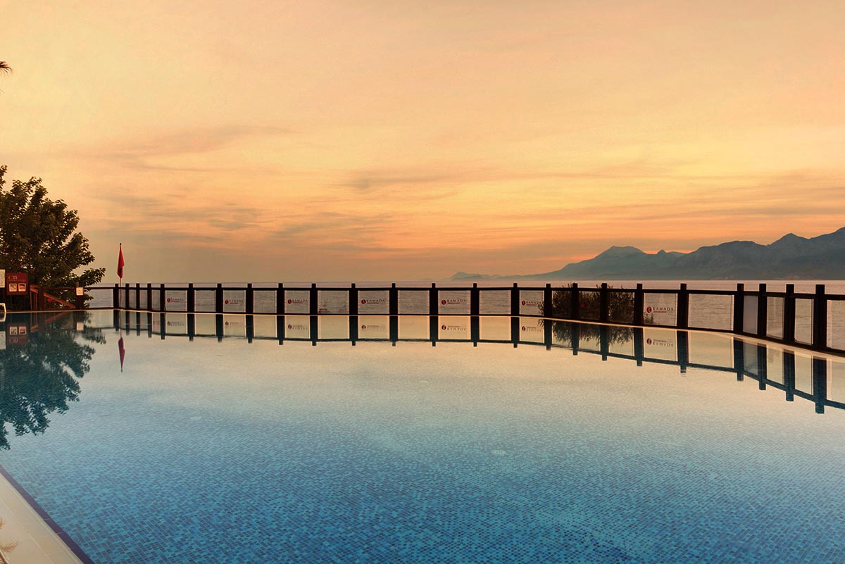 в 16 км от аэропорта, в центре г.Анталья, на высоком берегу моря.